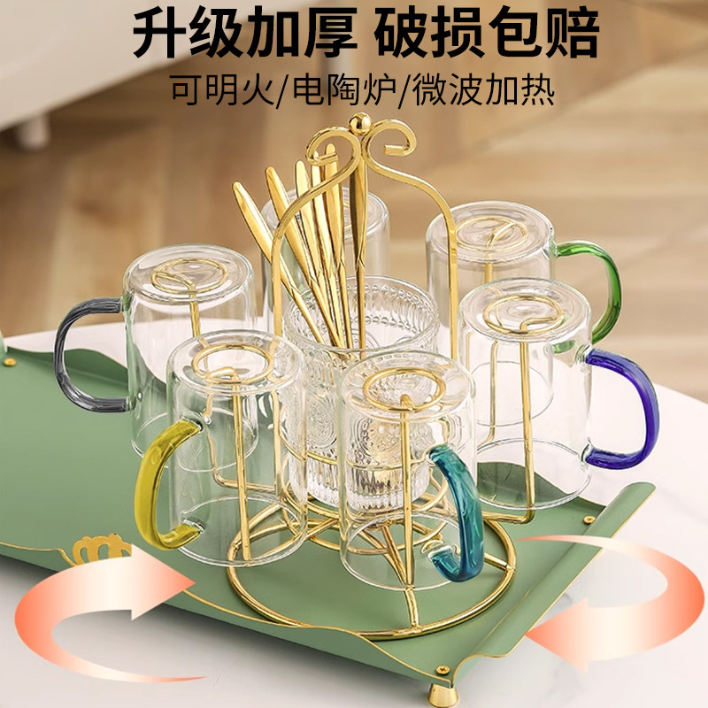 喝水杯家用客厅茶壶杯子水壶茶杯高硼硅玻璃杯待客茶具 杯子套装