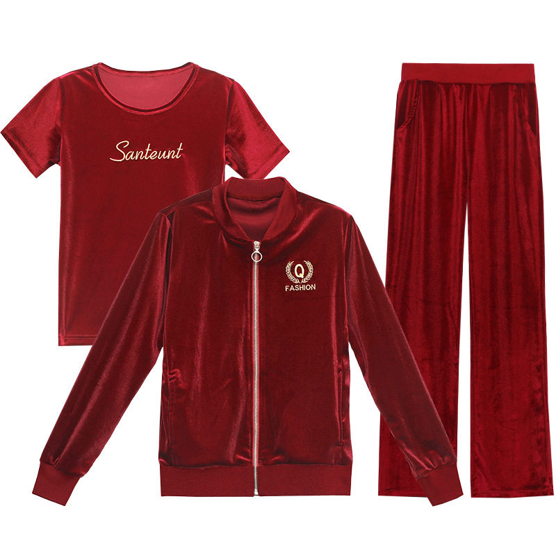 时尚 女2022年秋冬季 显高显瘦立领卫衣直筒裤 三件套潮 休闲运动套装