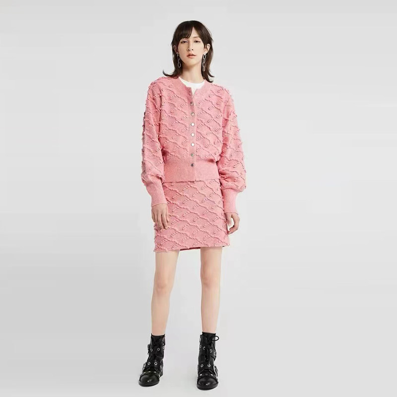 时尚 女秋冬季 新款 洋气减龄小香风立体纹上衣高腰半身裙两件套 套装由