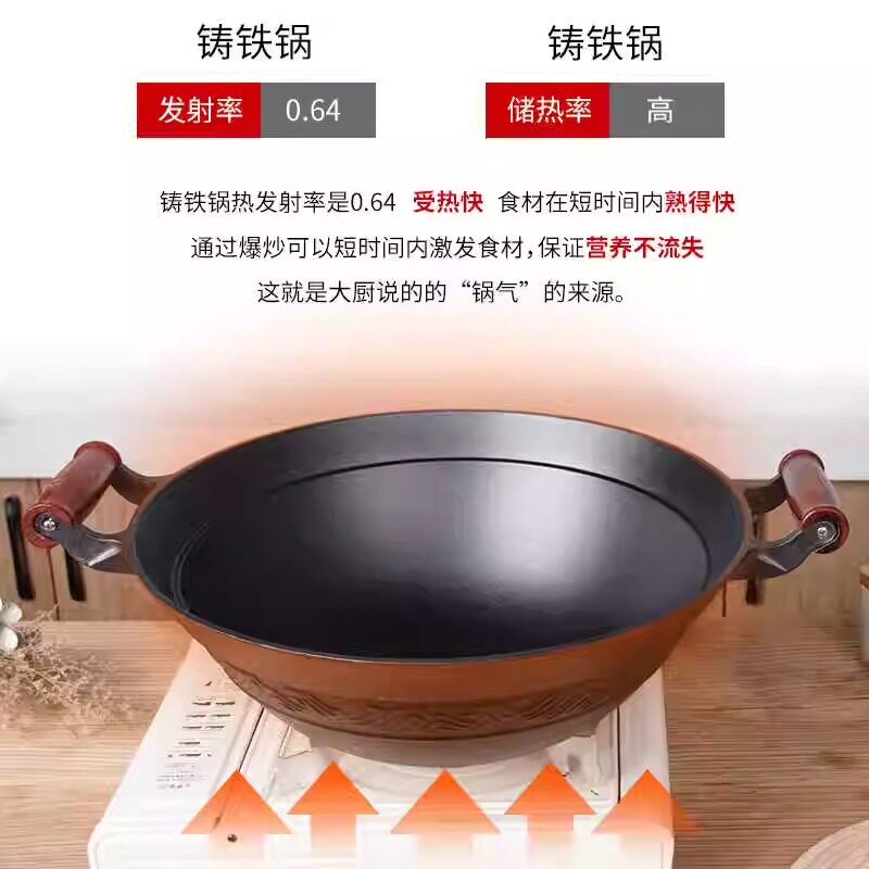 小幸福加深圆底无涂层大铁锅家用铸铁炒锅无涂层生铁加厚炒菜锅