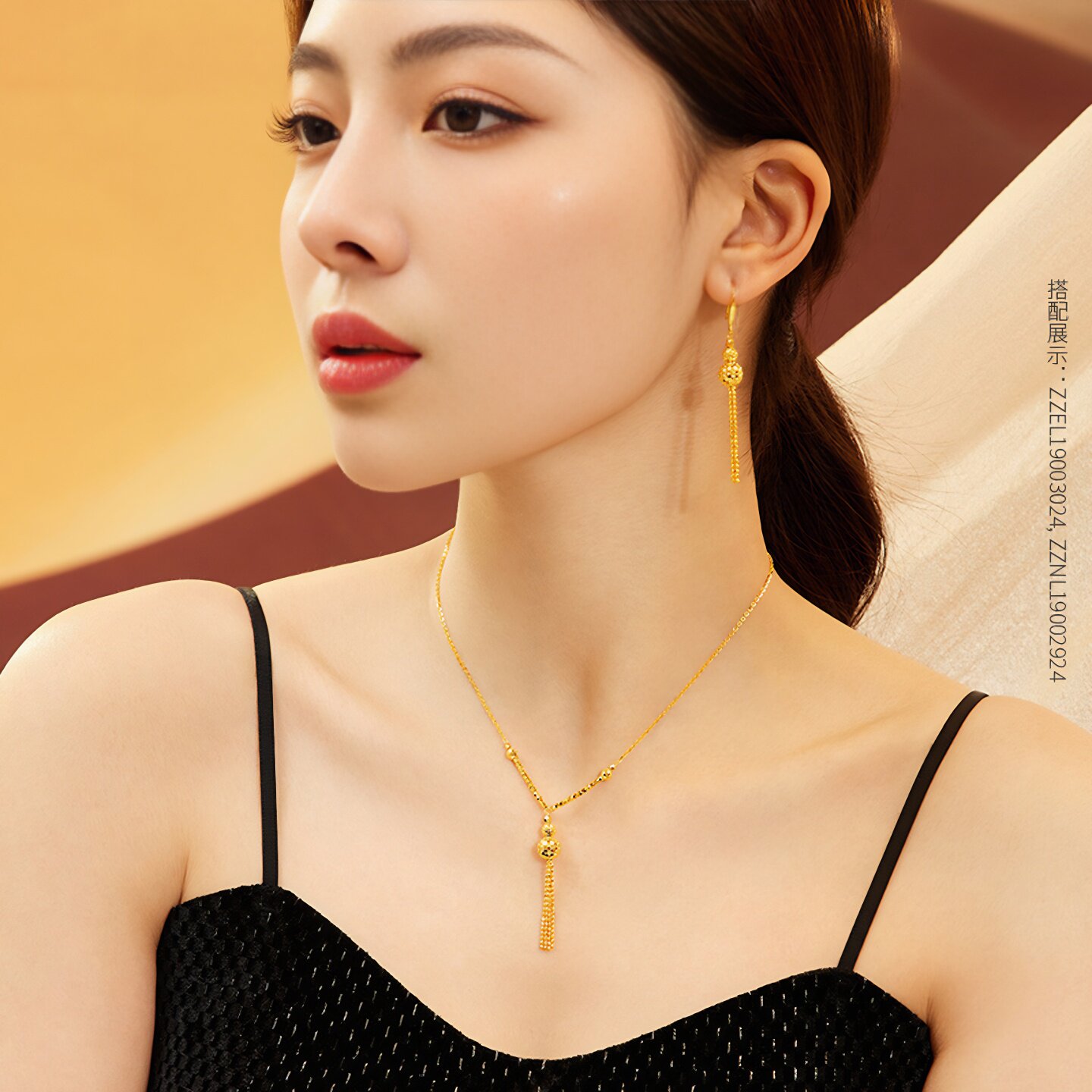 足金耳饰生日礼物计价 金至尊流金葫芦黄金耳钩古典国风潮耳饰新款