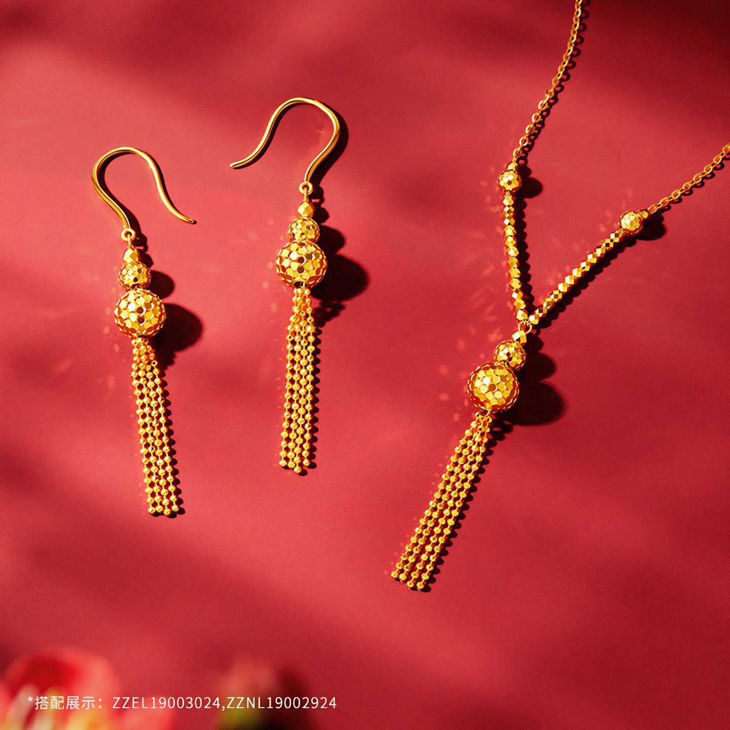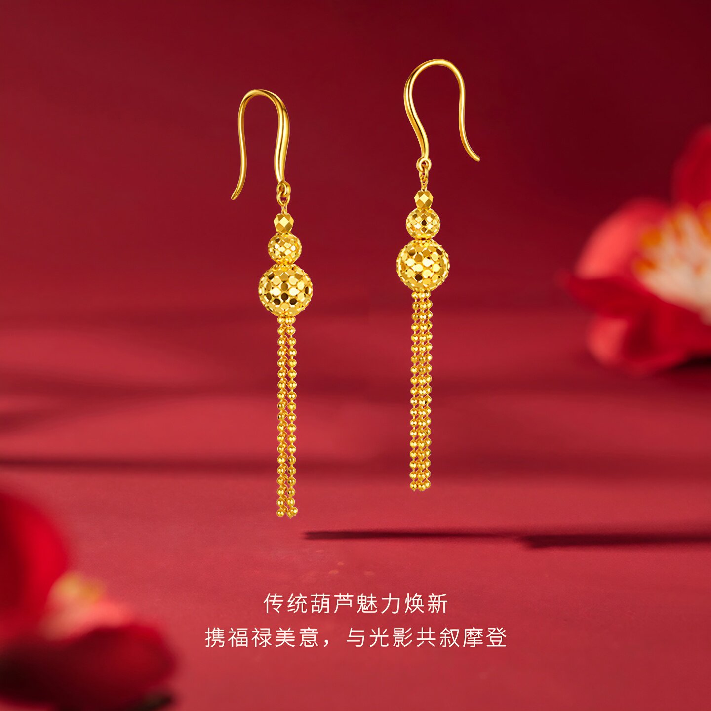 足金耳饰生日礼物计价 金至尊流金葫芦黄金耳钩古典国风潮耳饰新款由