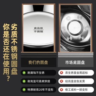 食品级不锈钢盘子圆盘盆平底家用商用蒸盘圆形菜盘碟子托盘大铁盘