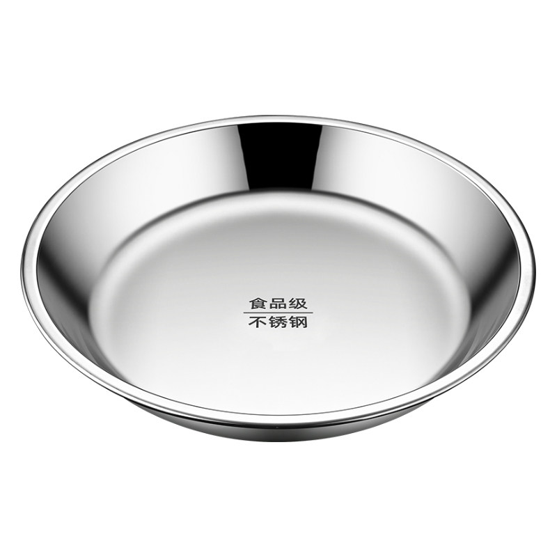 食品级304不锈钢盘子圆盘盆平底家用蒸盘圆形菜盘碟子托盘大铁盘