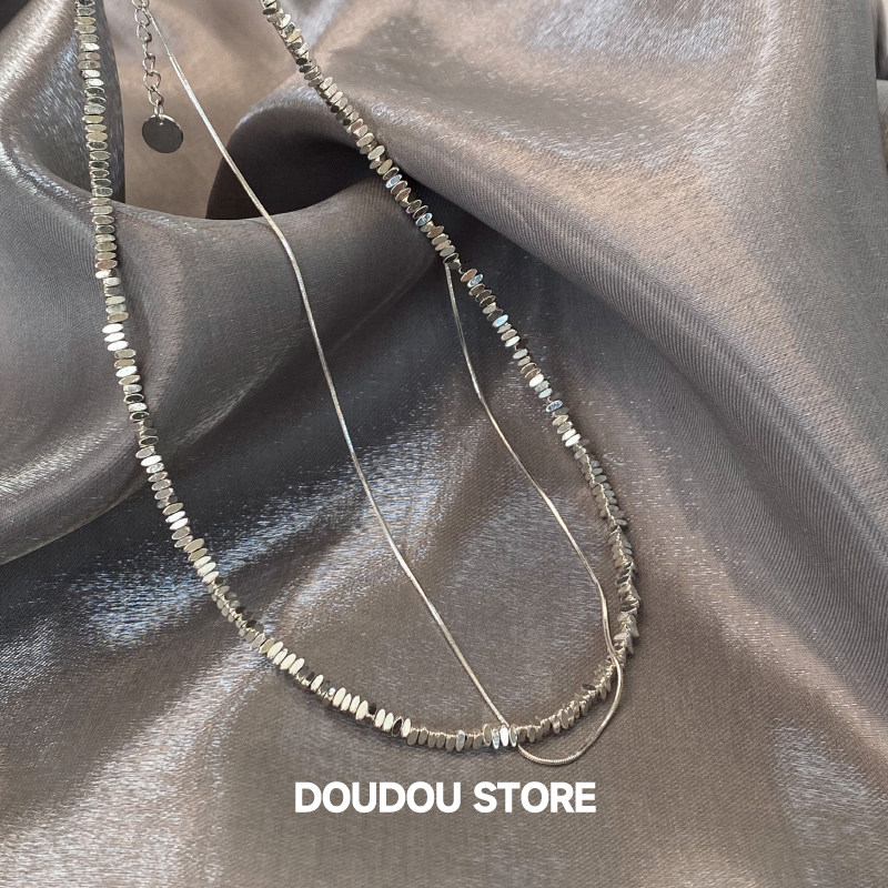 休闲日常日韩ins女 DOUDOUSTORE保色双层碎银子蛇骨链项链简洁个性