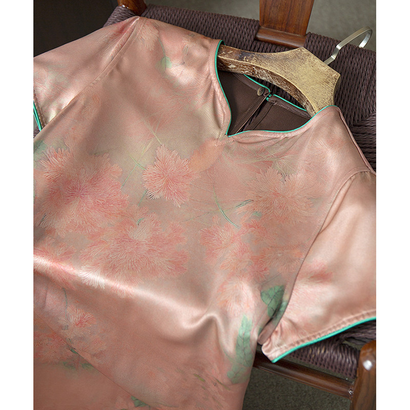 丝艺 A字裙夏裙子 可双面穿真丝香云纱连衣裙女桑蚕丝国风短袖