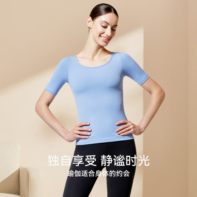 新款 女夏薄款 高弹速干普拉提训练服套装 瑜伽t恤运动上衣 健身短袖