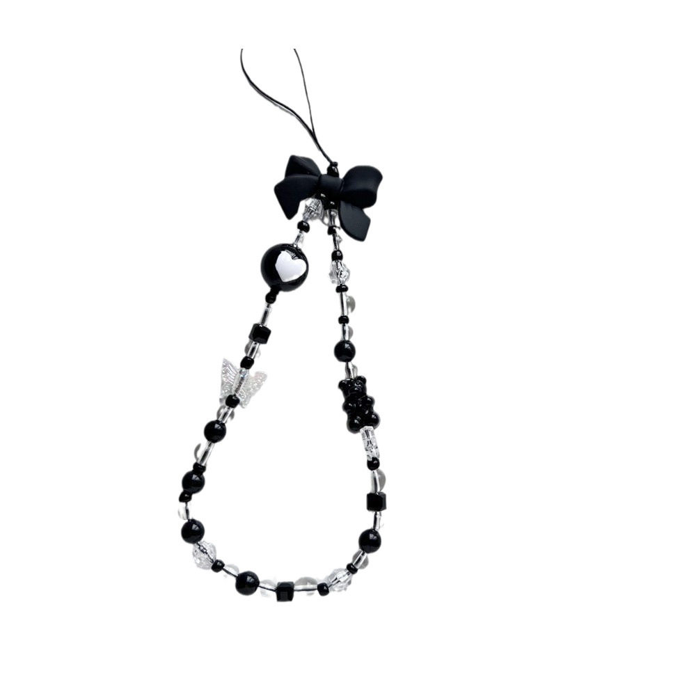 彩球黑色爱心手机链条手腕绳小众串珠ins风网红挂绳女 朴彩英同款