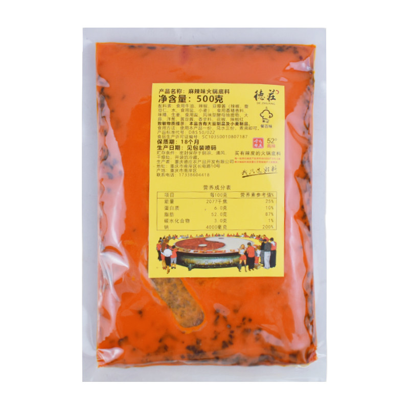 串串香冒菜底料 德庄火锅底料52度高辣500克重庆麻辣牛油锅餐饮装
