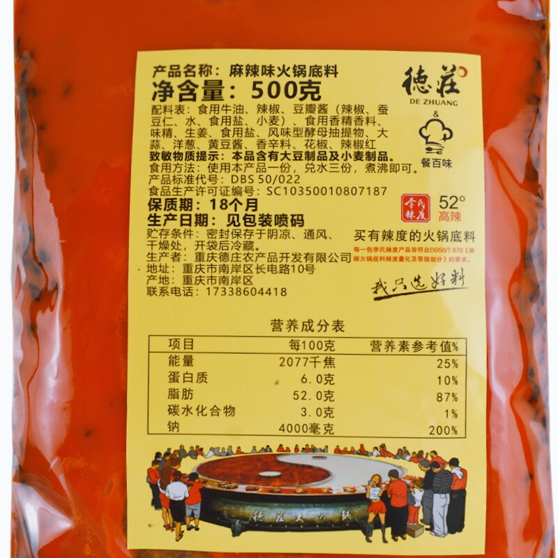 为您提供商品串串香冒菜底料 德庄火锅底料52度高辣500克重庆麻辣牛油锅餐饮装的详细介绍,