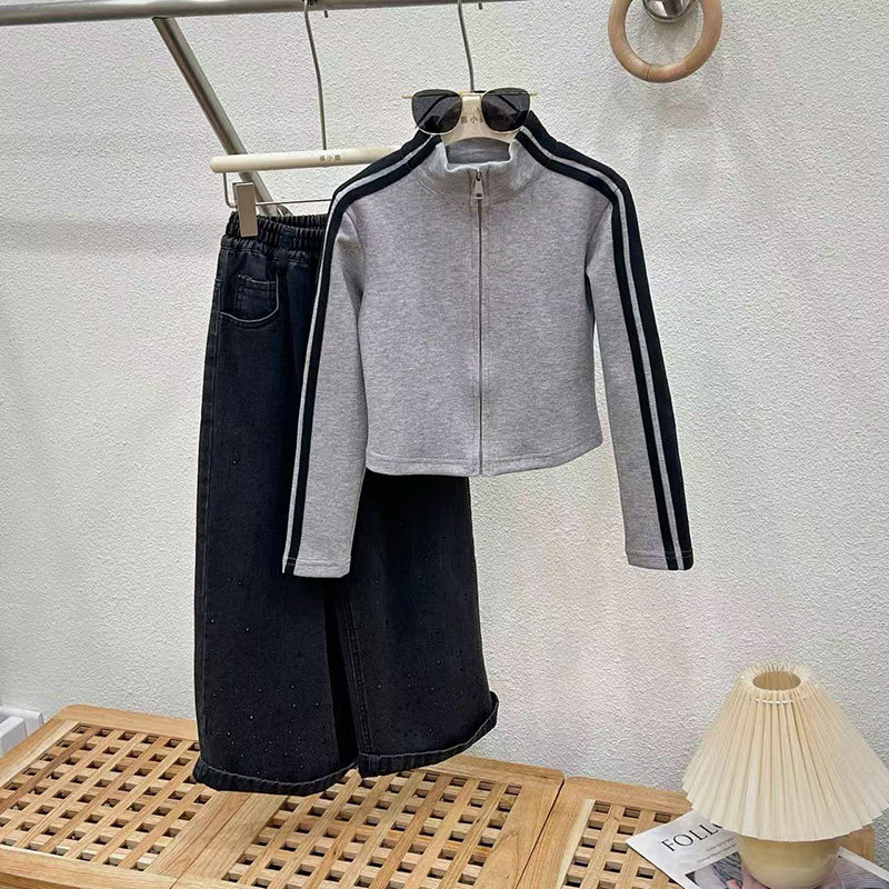 儿童直筒阔腿牛仔裤 女童秋季 套装 2026新款 两件套春秋大童洋气童装
