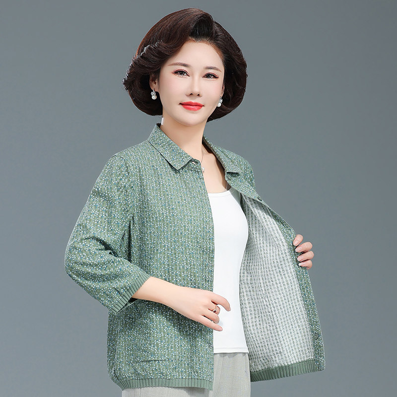 衬衫 中老年女春夏季 上衣洋气休闲 时尚 薄外套妈妈装 新款 纯棉七分袖由