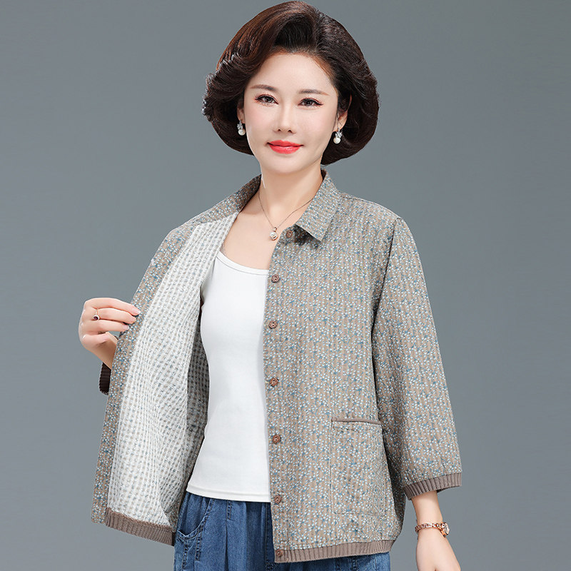 衬衫 中老年女春夏季 上衣洋气休闲 时尚 薄外套妈妈装 新款 纯棉七分袖