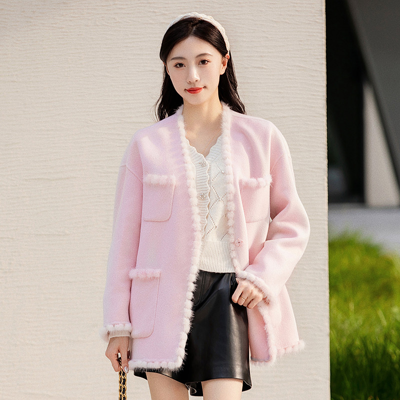 秋冬反季 圆领气质小香风韩系小个子羊毛呢外套 双面羊绒大衣女短款