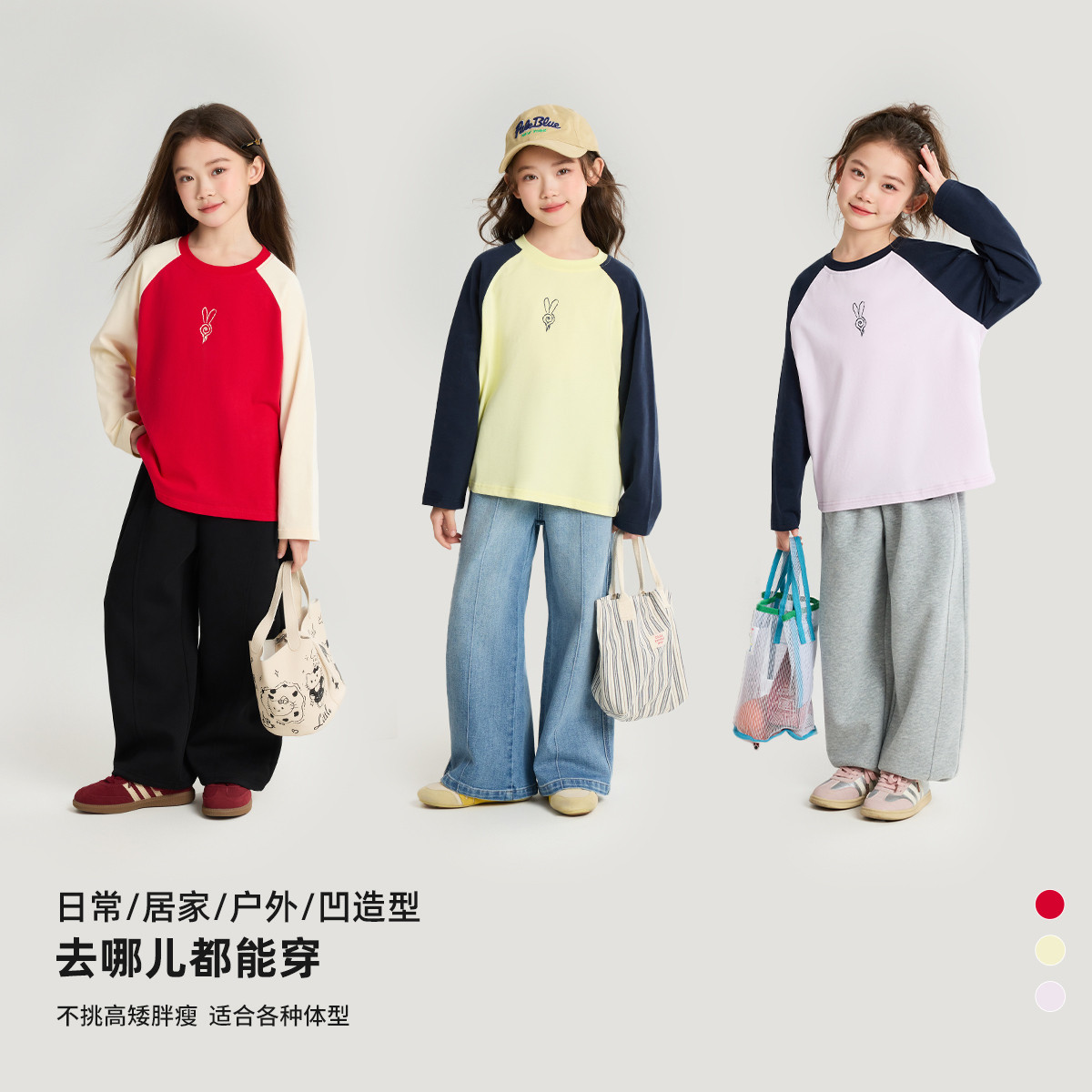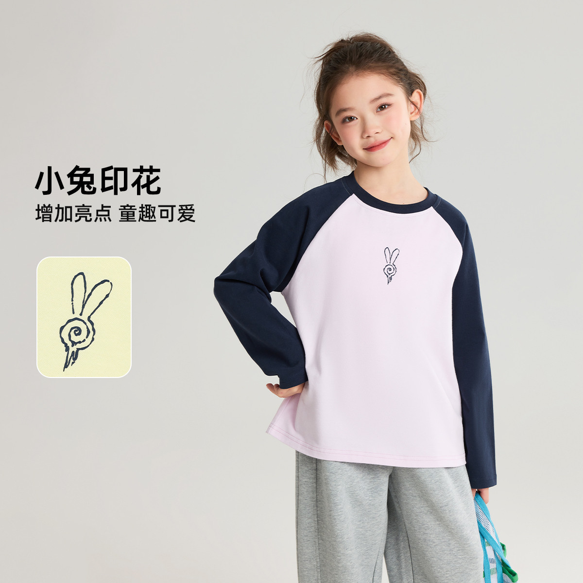 为您提供商品布丁哈鲁春装 上衣2026春季 新款 儿童插肩撞色全棉T恤 女童童装的详细介绍,