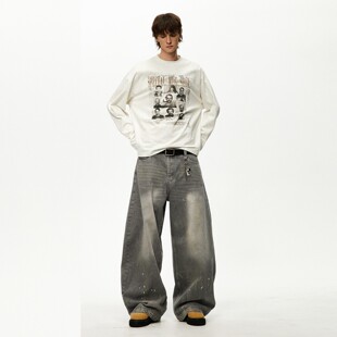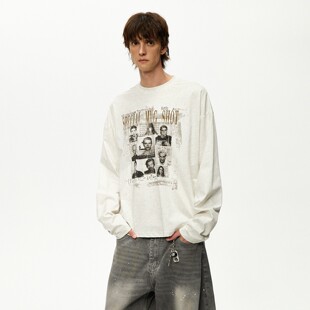 为您提供商品T恤2025秋季 情侣宽松百搭上衣 复古vintage人物印花长袖 男道美式的详细介绍,