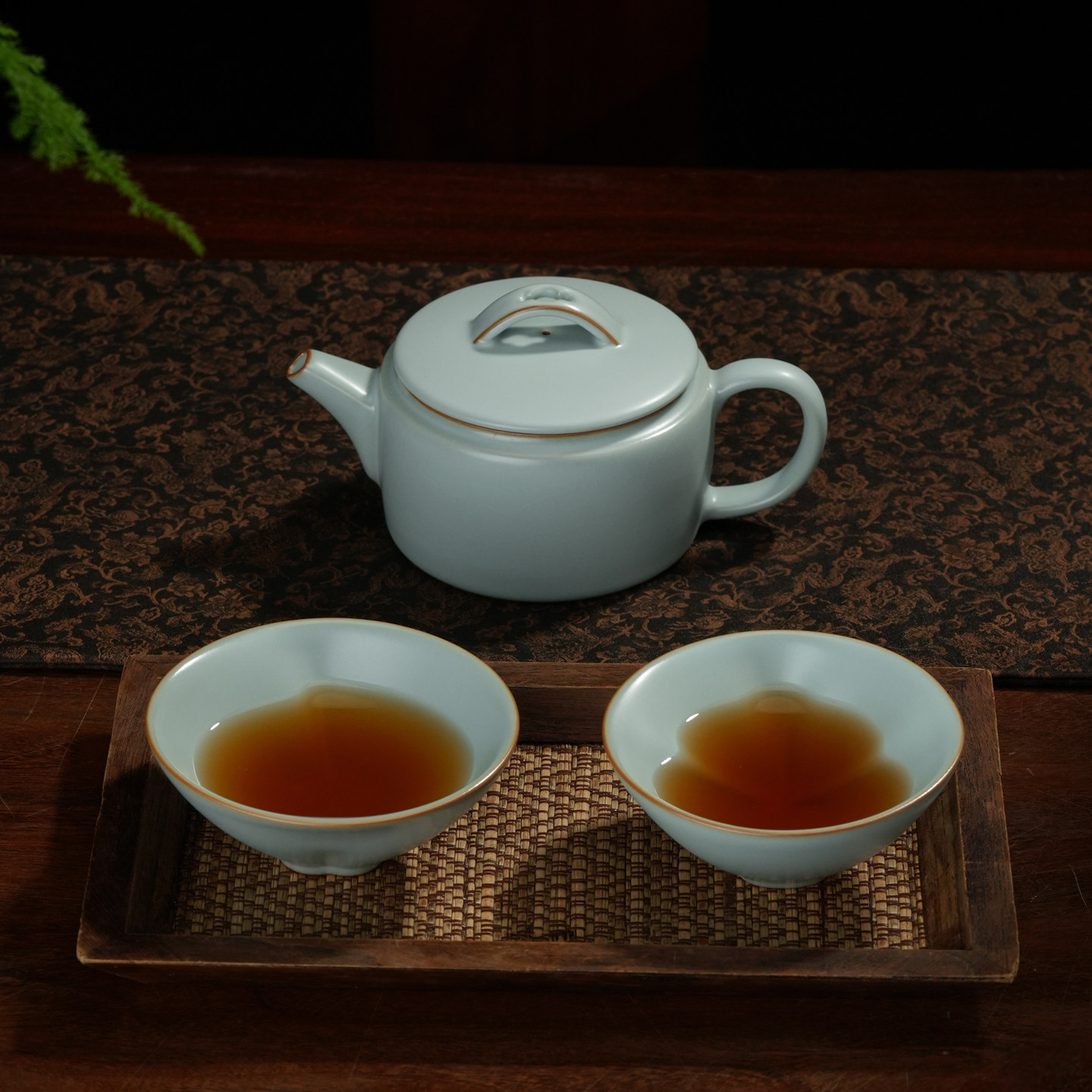 精致送礼汝瓷功夫茶具礼盒装 汉瓦茶组 办公室会客中式 汝窑茶壶套装