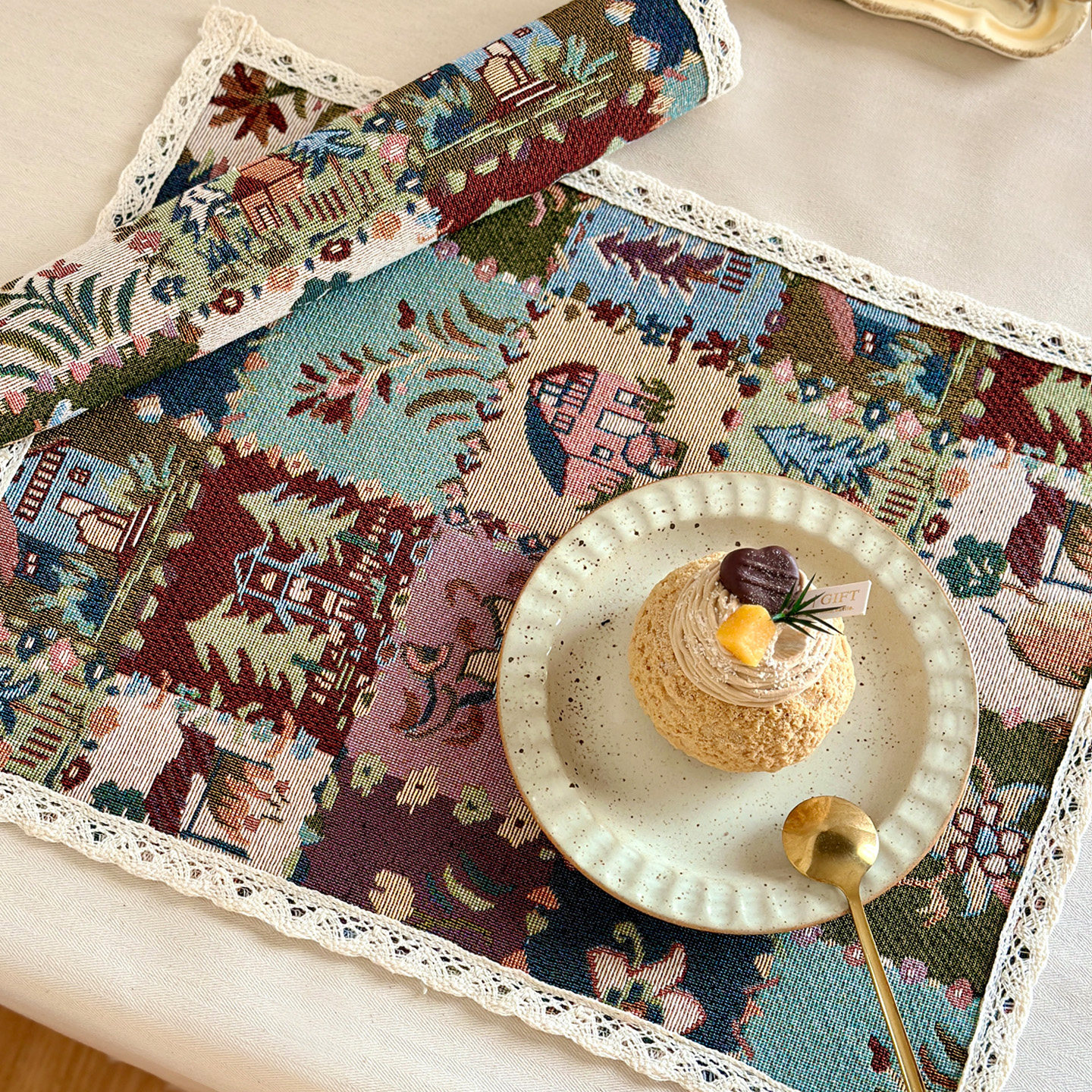 复古民族卡通餐垫加厚提花蕾丝西餐桌布艺茶几盖巾定制 法式