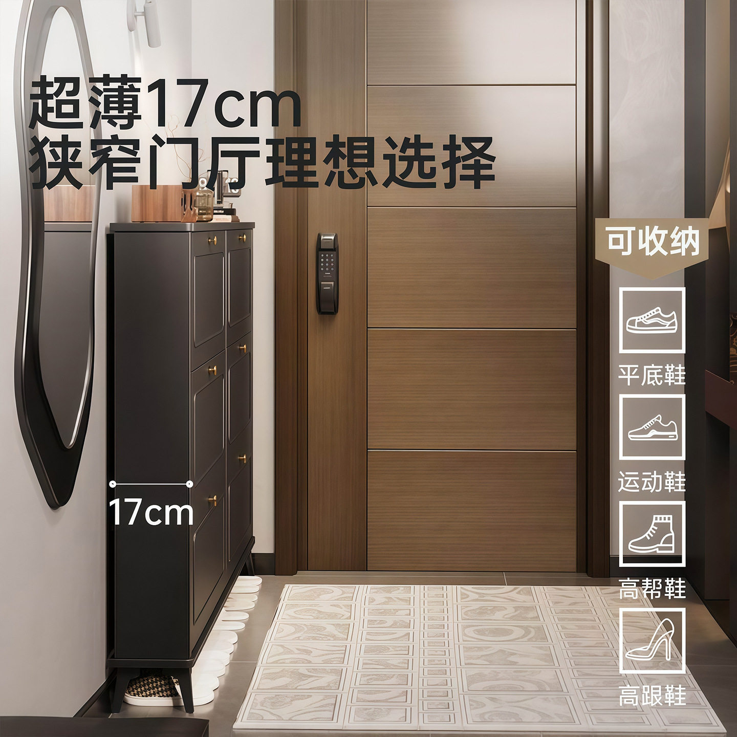 为您提供商品黑色超薄鞋 架 柜家用门口入户玄关柜小窄收纳柜一体靠墙外楼道口鞋的详细介绍,