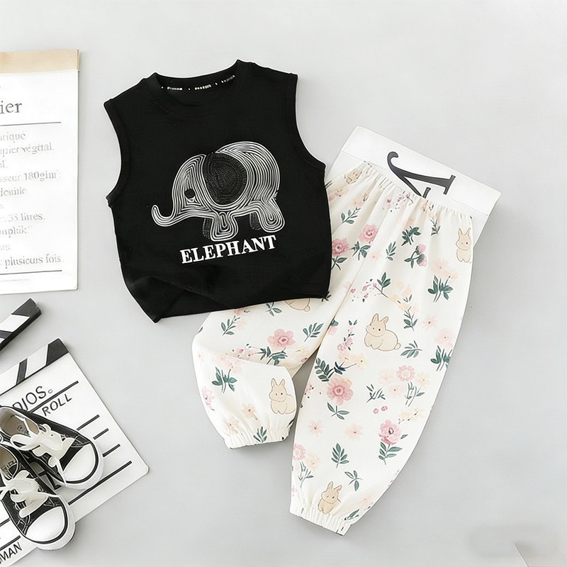 新款 洋气套装 宝宝纯棉背心儿童时髦灯笼防蚊裤 两件套女孩 儿童夏季由