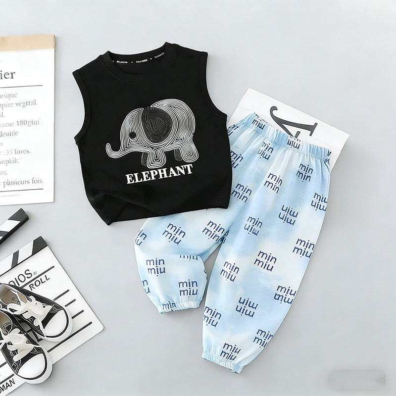 新款 洋气套装 宝宝纯棉背心儿童时髦灯笼防蚊裤 两件套女孩 儿童夏季
