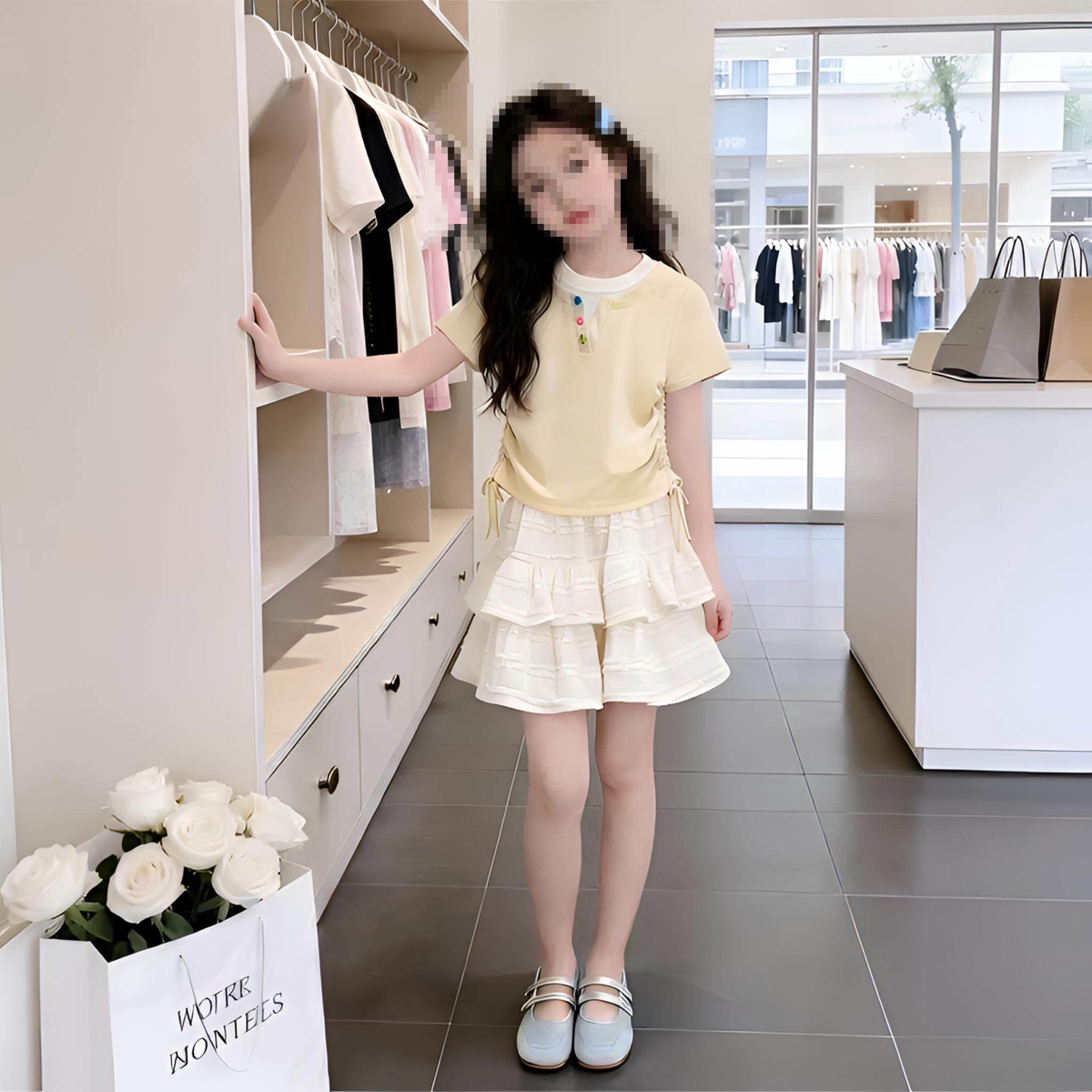 女童夏装 洋气中大童多巴胺假两件短袖 蓬蓬蛋糕裙套装 少女风 新款
