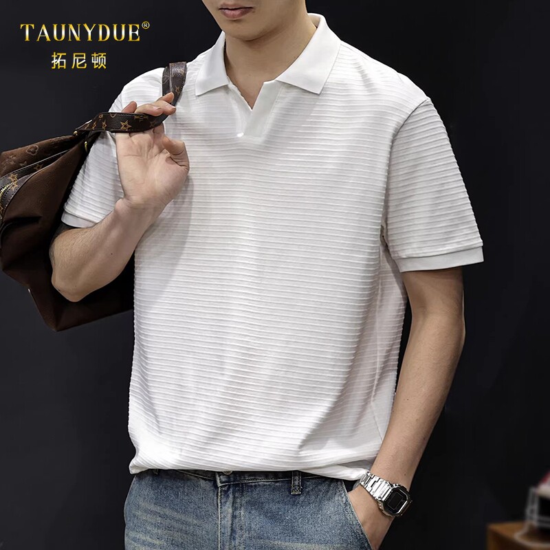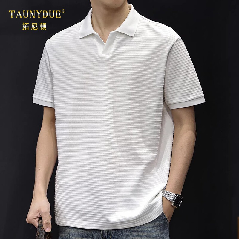 为您提供商品TAUNYDUE极简老钱风海鸥领POLO衫 短袖 T恤坑条松弛感宽松大码 男士的详细介绍,