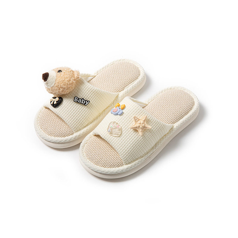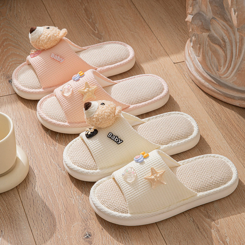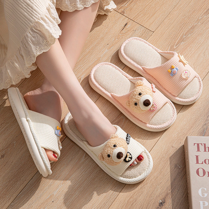 跨境亚马逊小熊亚麻拖鞋 凉拖鞋 棉麻拖鞋 批发 女室内少女可爱四季