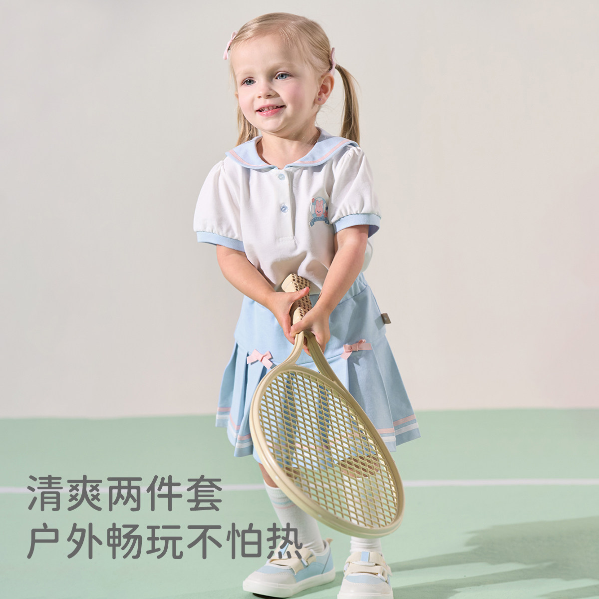 戴维贝拉女童半裙套装 款 儿童polo衫 两件套洋气宝宝衣服DB2251294 2025夏装