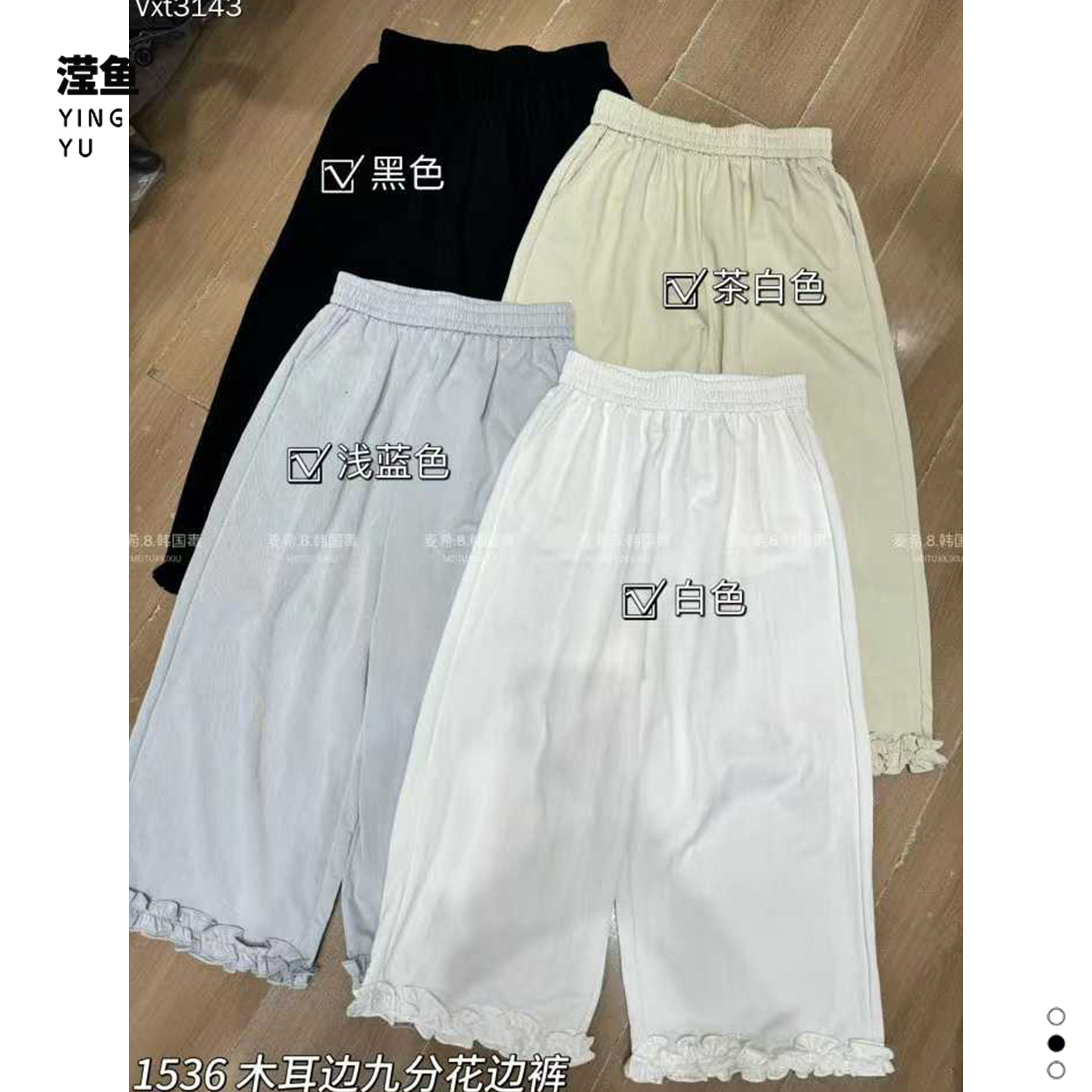 高腰花边阔腿裤 新款 1536大码 宽松显瘦九分裤 休闲裤 女夏季 麦希由