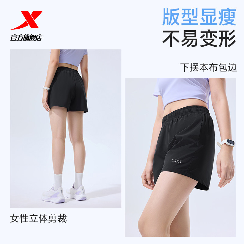 特步速干套装 透气T恤短袖 短裤 跑步体测训练服 女运动两件套夏季