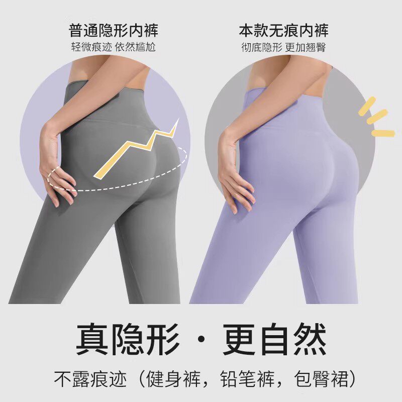 乳胶垫瑜伽T裤 女 VURU中腰普拉提防尴尬线无痕运动健身丁字裤 LULU由