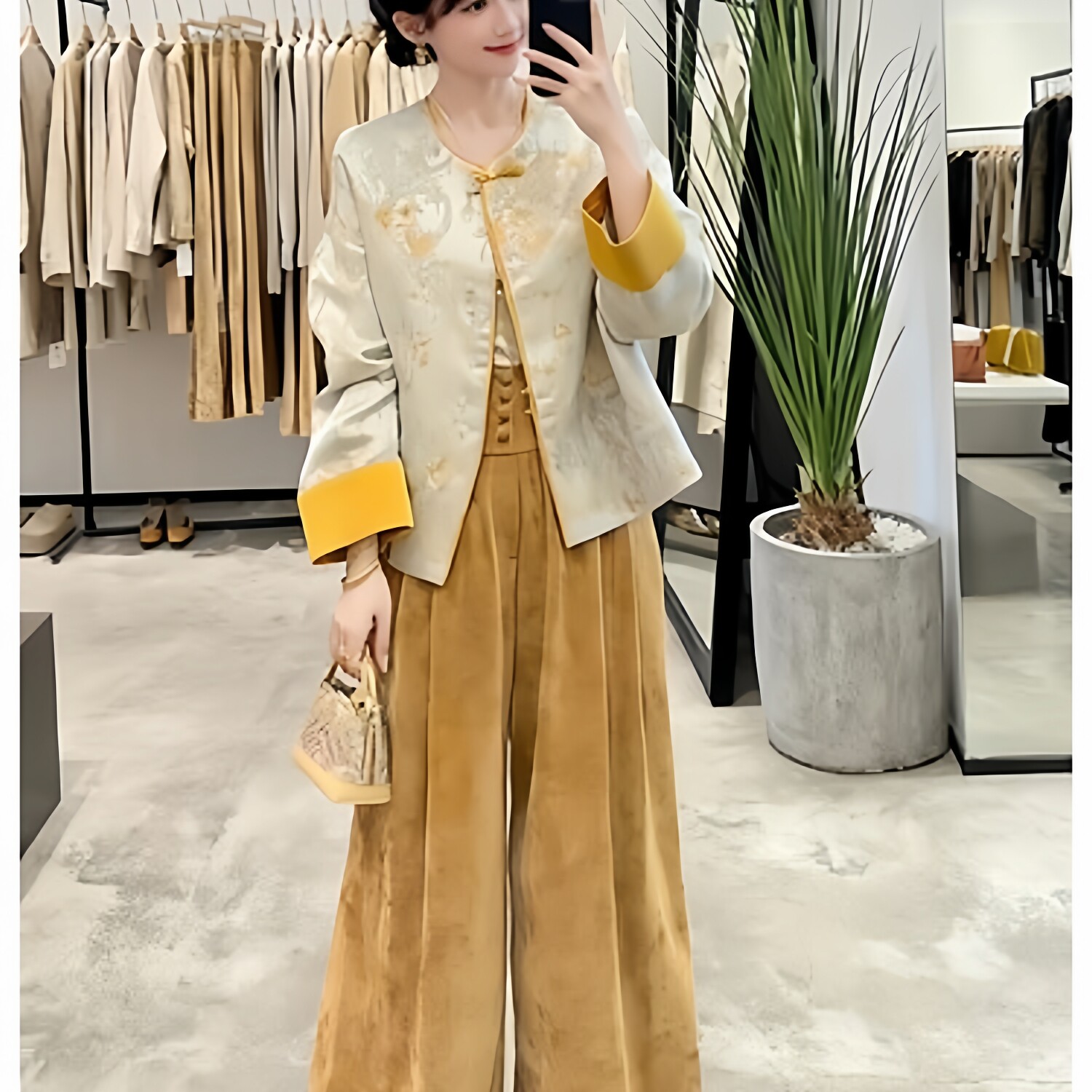 气质复古外套休闲裤 大码 两件套 女春季 套装 胖mm新中式 国风上衣长裤由