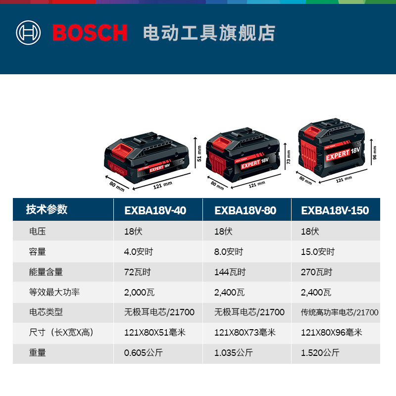 为您提供商品Bosch博世原装 18V 高功率长续航锂电专家级系列电池EXBA的详细介绍,