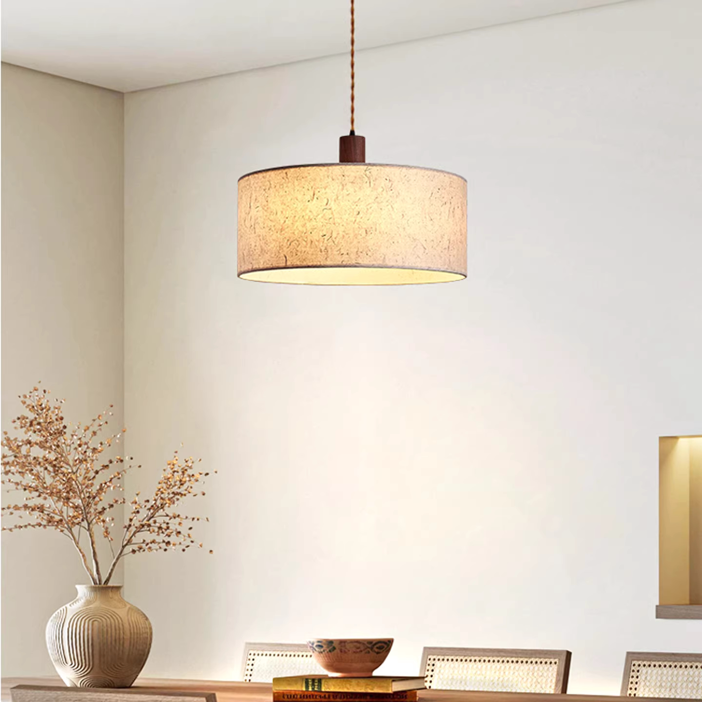 宋代美学吊灯实木新中式 侘寂风餐厅茶室床头小吊灯 禅意中古日式由