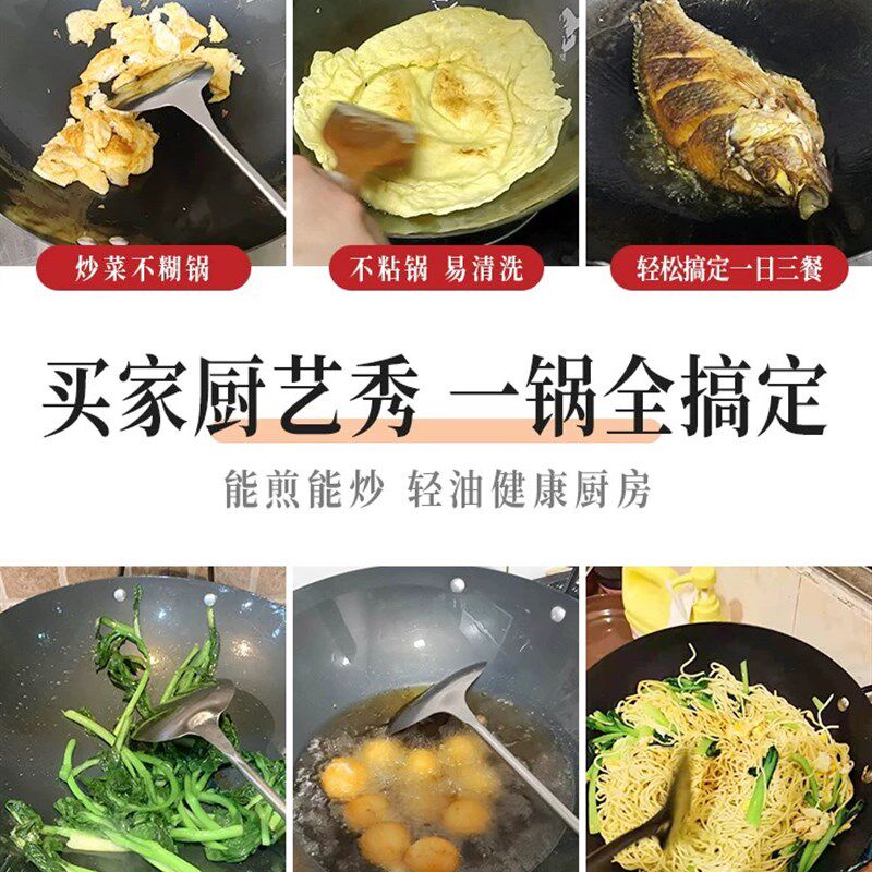炒锅家用不粘锅无涂层燃气灶适用 章丘炒菜锅传统铁锅官方旗舰老式