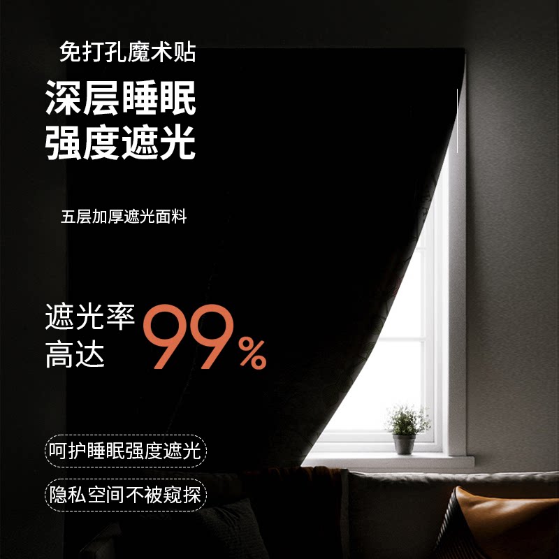 遮光窗帘成品全遮光布神器2026新款 卧室阳台防晒隔热遮阳布 免安装