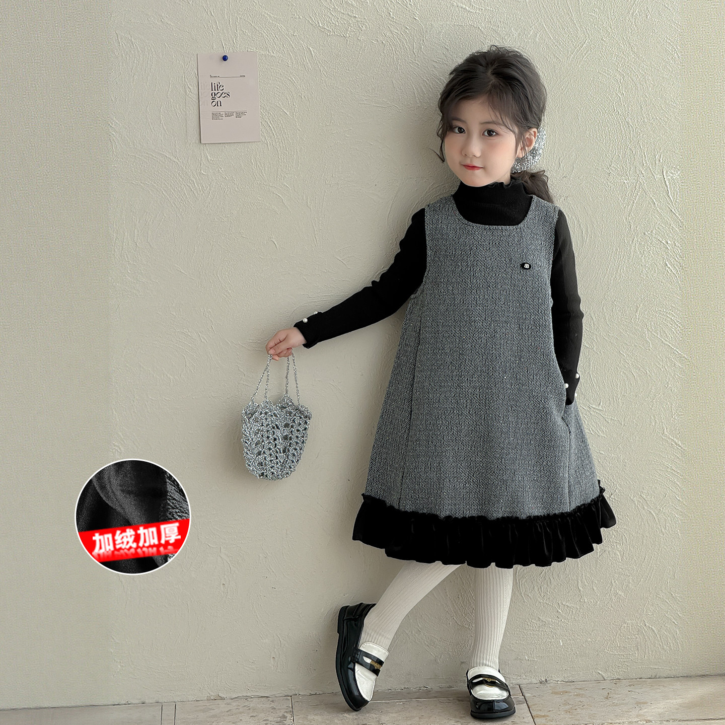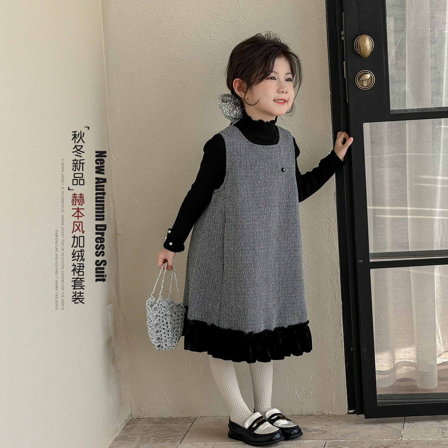 为您提供商品女童裙子冬装 2026新款 洋气女孩一体绒打底衫 儿童背心裙两件套 套装的详细介绍,