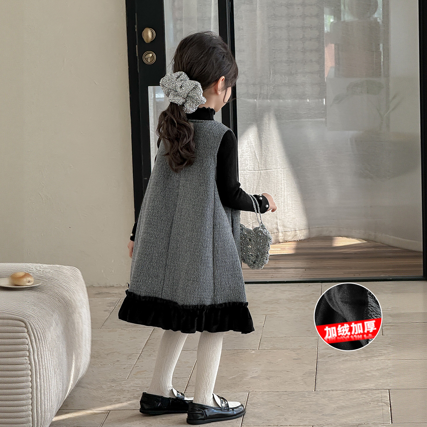 女童裙子冬装 2026新款 洋气女孩一体绒打底衫 儿童背心裙两件套 套装由