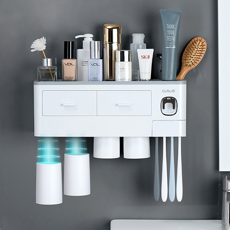 免打孔卫生间牙具座牙膏收纳浴室 牙刷牙杯壁挂置物架电动牙刷套装