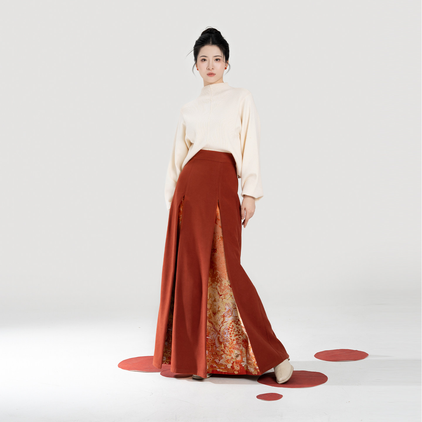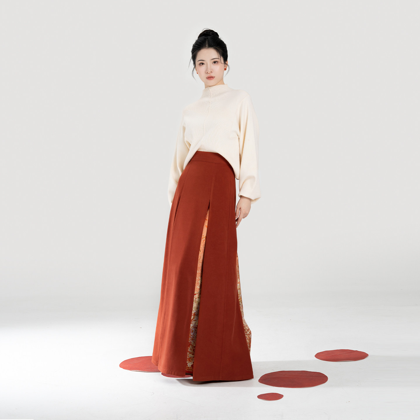 新中式 半高领打底毛衣女改良三裥裙遮胯显瘦半身裙子 枫橘 织造司由