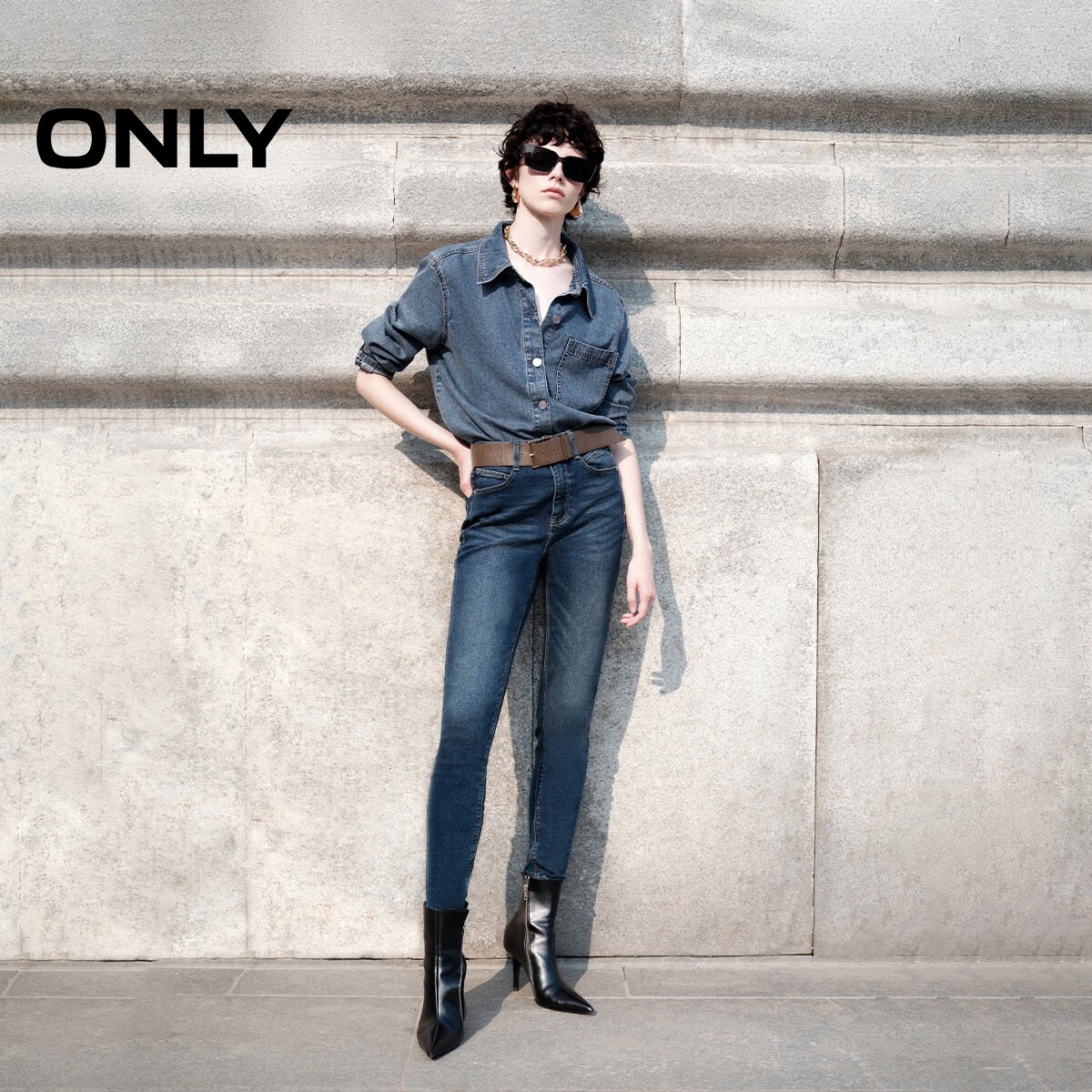 为您提供商品ONLY2026夏季 灵动圆弧形下摆设计正肩长袖 翻领牛仔衬衫 女 新款的详细介绍,