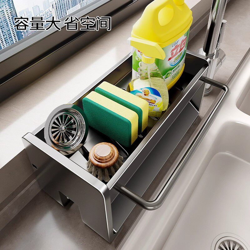 304不锈钢厨房沥水收纳架海绵清洁抹布架水槽水池台面收纳置物架