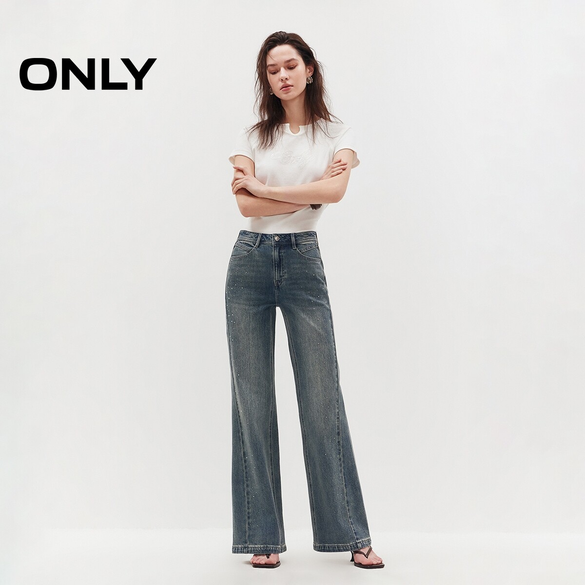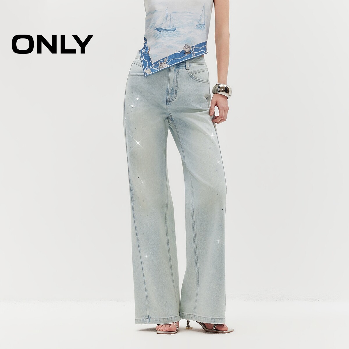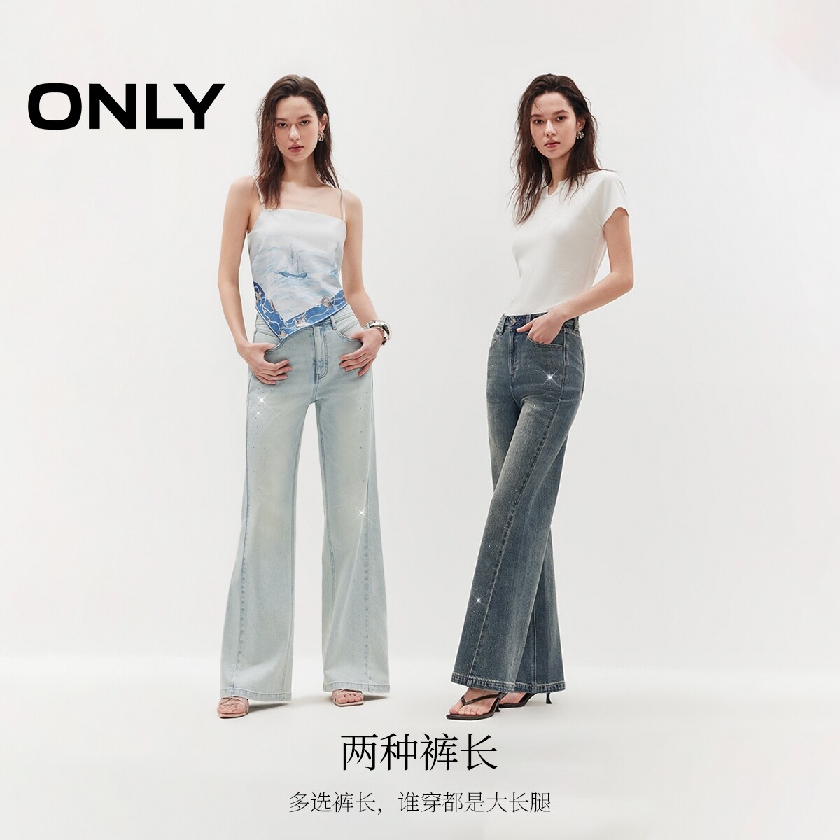 线前移水洗微喇牛仔裤 ONLY2026春季 女 饰裤 闪耀亮钻装 新款 个性由