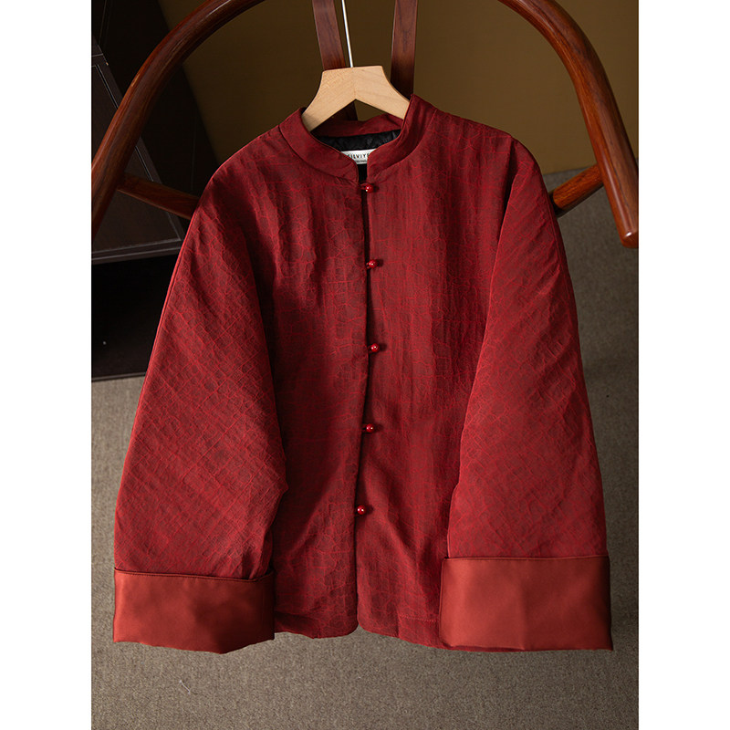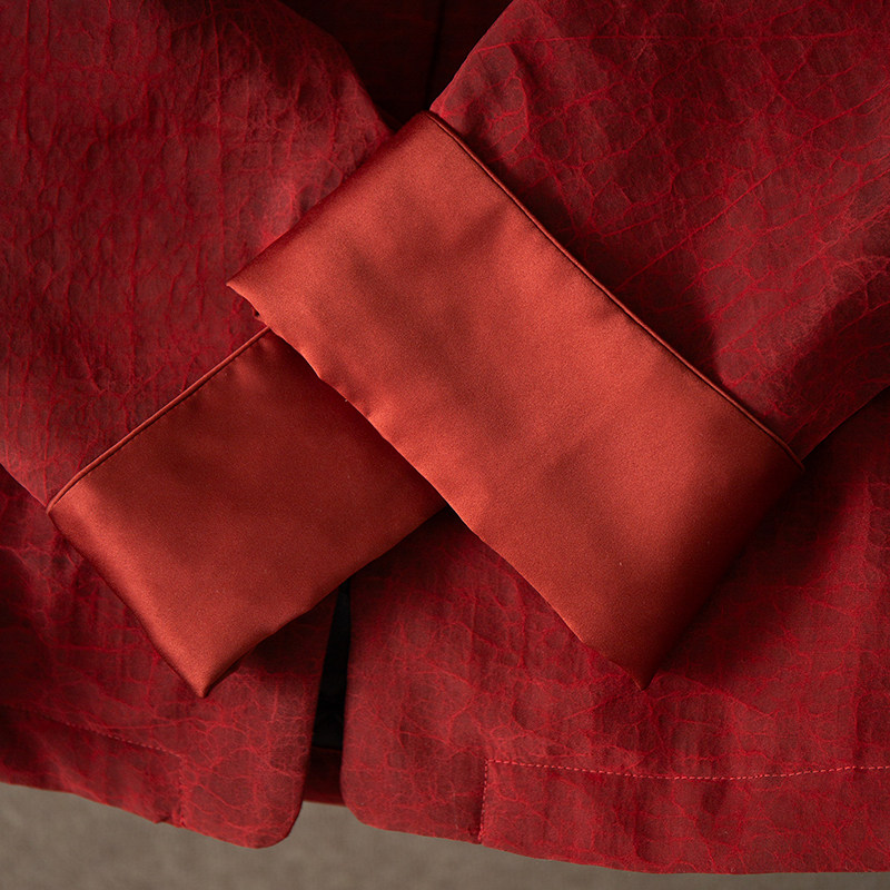 100%桑蚕丝龟裂纹香云纱真丝夹棉棉服外套冬 丝艺红龟新年服新中式