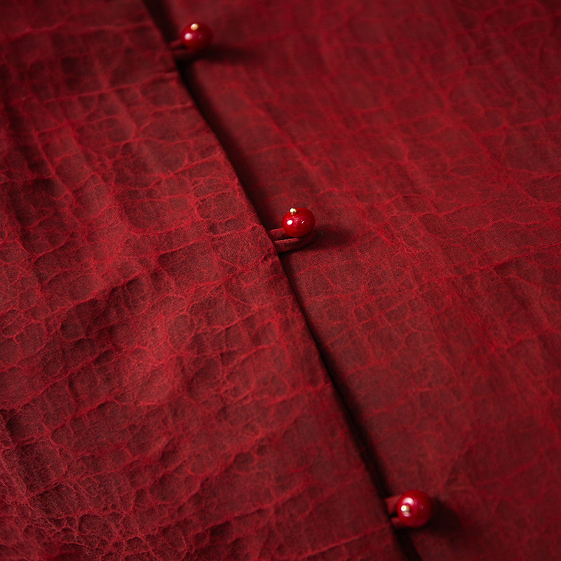 100%桑蚕丝龟裂纹香云纱真丝夹棉棉服外套冬 丝艺红龟新年服新中式由