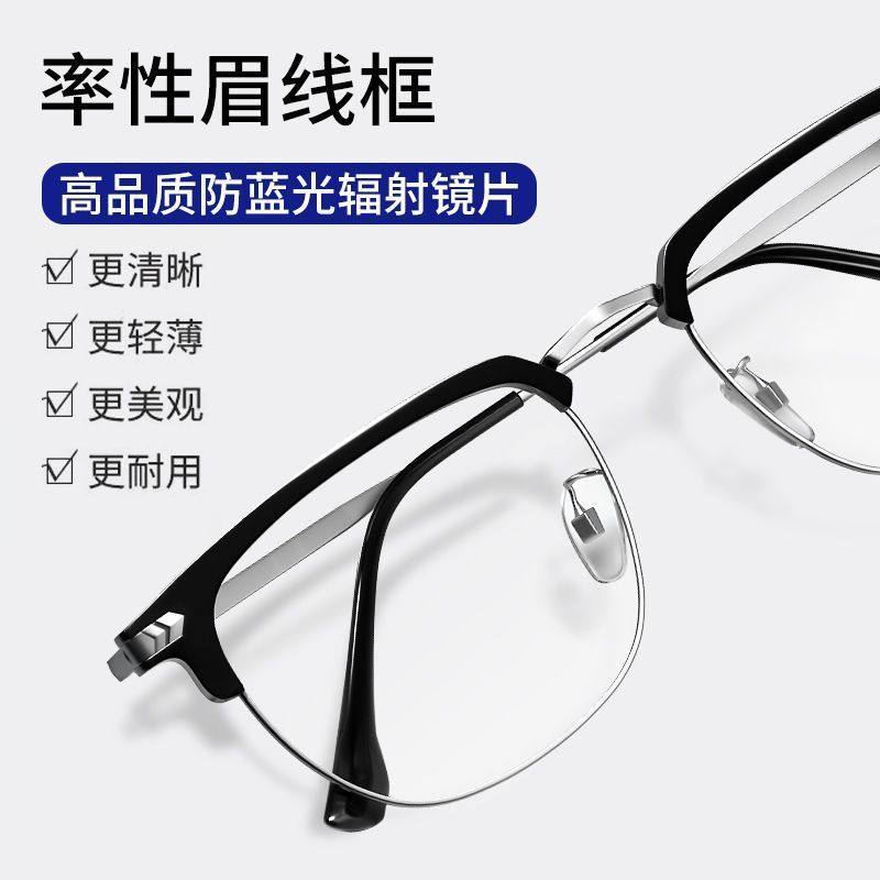 商务半框眼睛架定制成品光学镜可配度数近视框眼镜防蓝光 狂飙男士