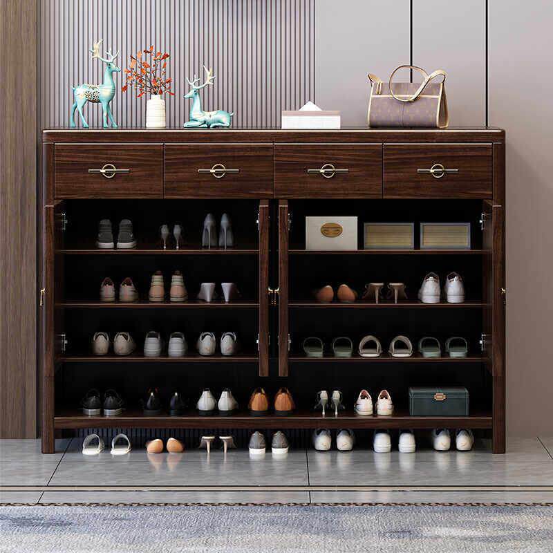 新中式 柜入户玄关柜一体家用门口小户型客厅大容量 乌金木实木鞋