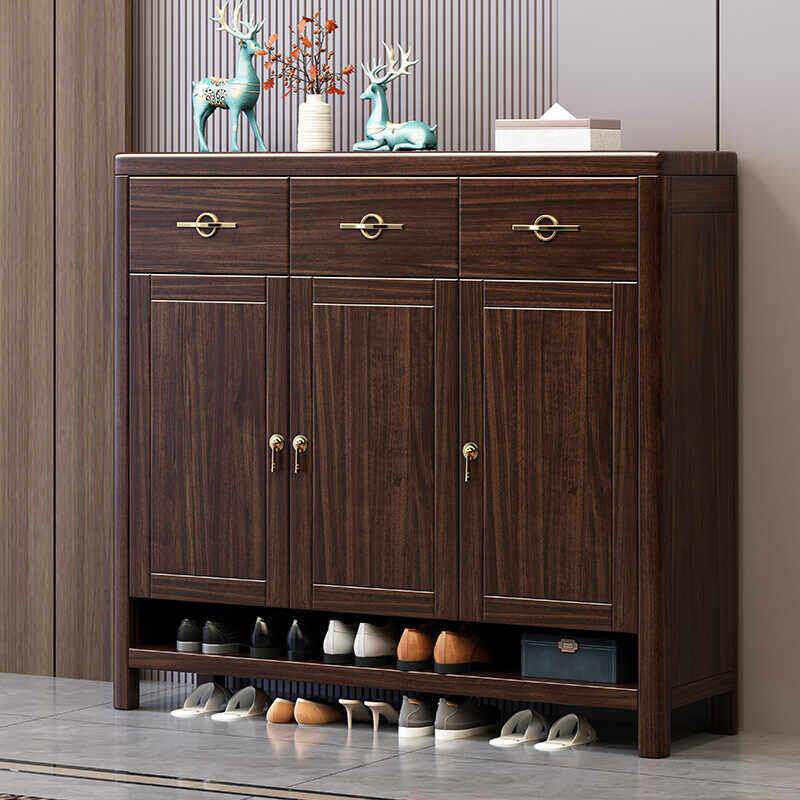 新中式 柜入户玄关柜一体家用门口小户型客厅大容量 乌金木实木鞋由