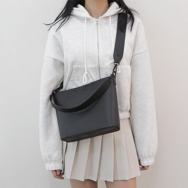 韩版 手提小包 荔枝纹PU皮斜挎包男女休闲单肩包潮流时尚 韩国2024款